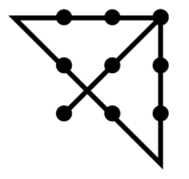 Here’s a pencil. Here’s a piece of copy paper with nine dots on it. Without lifting the pencil or folding the paper, connect the nine dots using four straight lines.