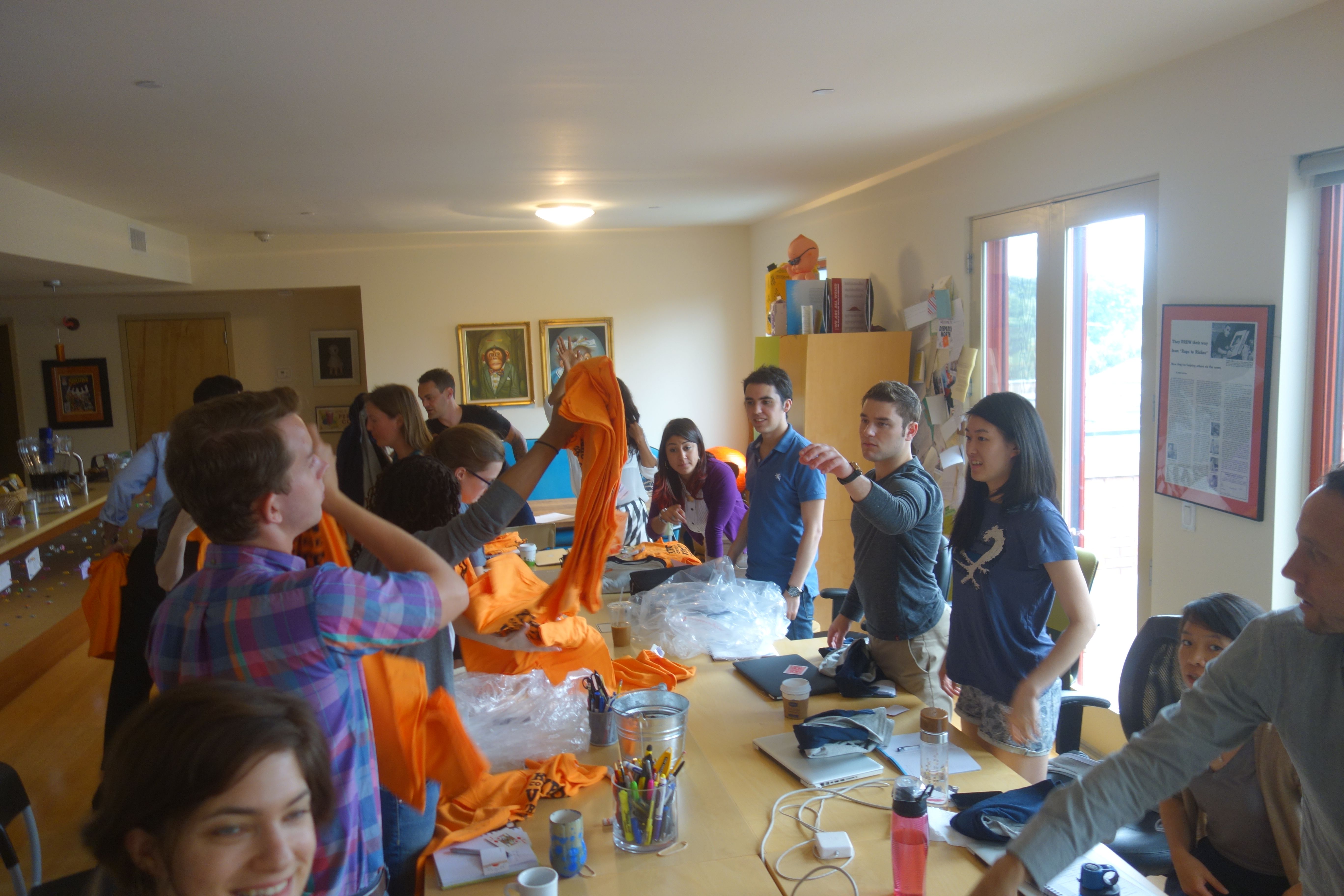 Here's what the interns looked like sorting through their limited-edition Krypton Ultimate Frisbee Team t-shirts ("league champs, 2016"). There are no more of these, but one day perhaps we'll make something even cooler.