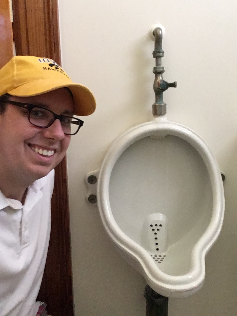 [If you’re interested, here’s where the original urinal came from. And here’s a picture of Travis with it, taken in July, 2018].