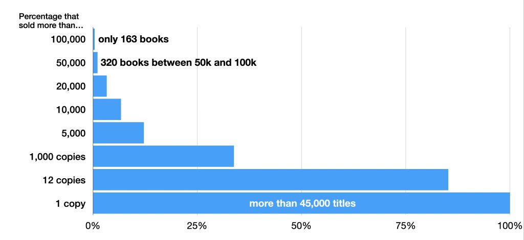 Only 163 books sold more than 100,000 copies. That’s fewer than one out of every 250 titles published.